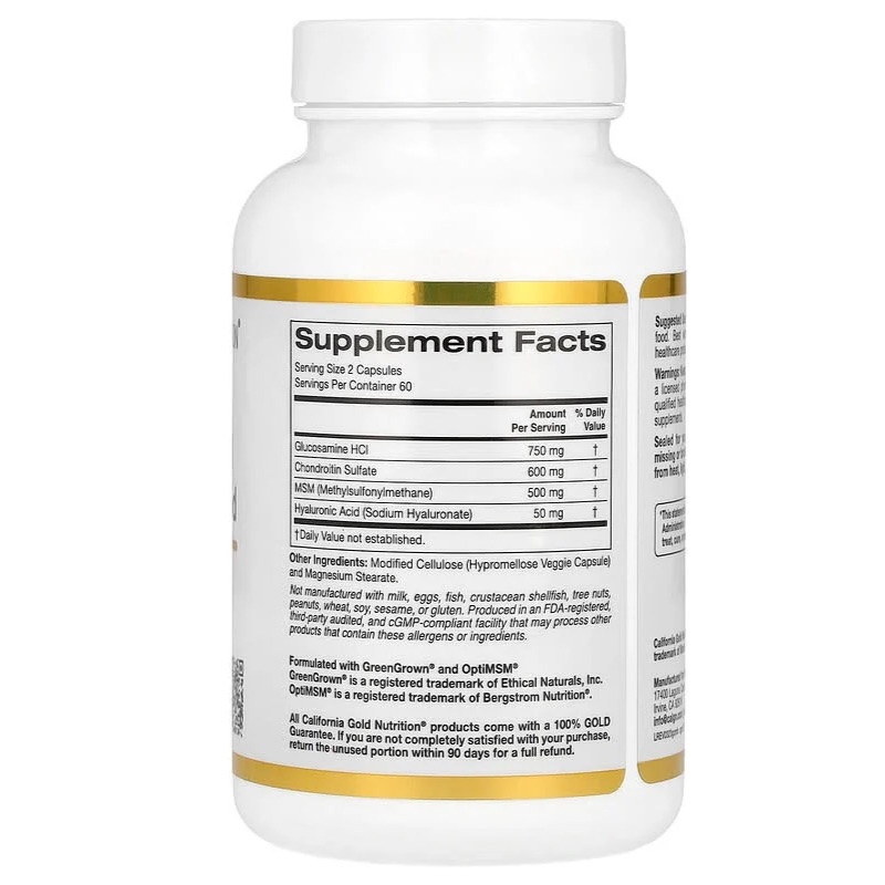 გლუკოზამინი, ქონდროიტინი, MSM და ჰიალურონის მჟავა (Glucosamine, Chondroitin, MSM + Hyaluronic Acid) 750/600/500/50 მგ სახსრების მხარდაჭერისთვის – ამერიკული მწვანე აფთიაქი